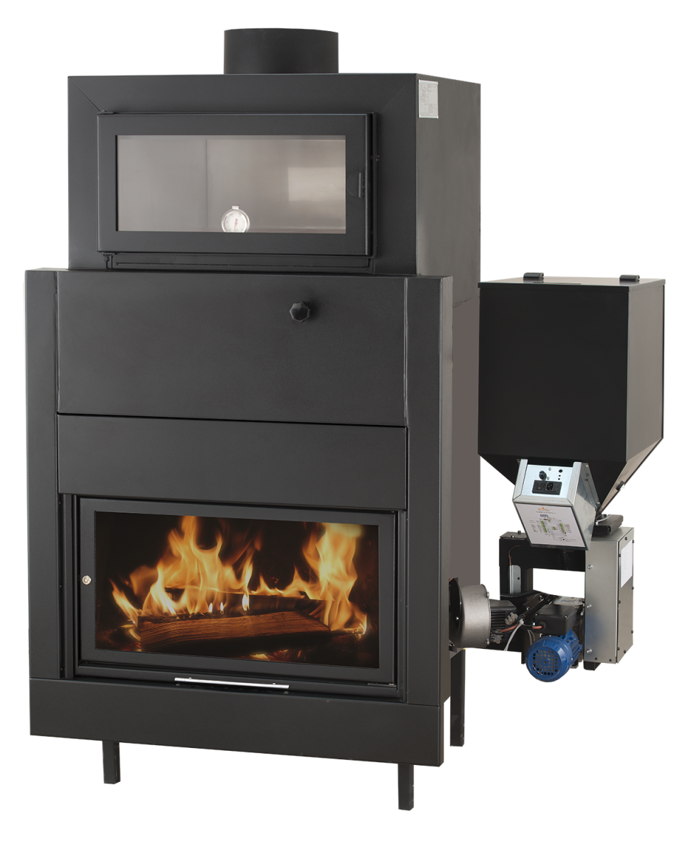 La sua unica camera di combustione permette l’utilizzo della legna come un termocamino tradizionale, oppure del pellet con il portellino laterale. Comoda e funzionale grazie all’accensione programmabile e alla gestione del pellet semplificata, varia la caduta e l’aspirazione di quest’ultimo per avere la massima autonomia. La magia del fuoco utilizzando vari combustibili, quali legna e pellet, uniti alla bontà di un piatto caldo cotto con il forno interamente di acciaio inox in fondo refrattario. Tre in uno!