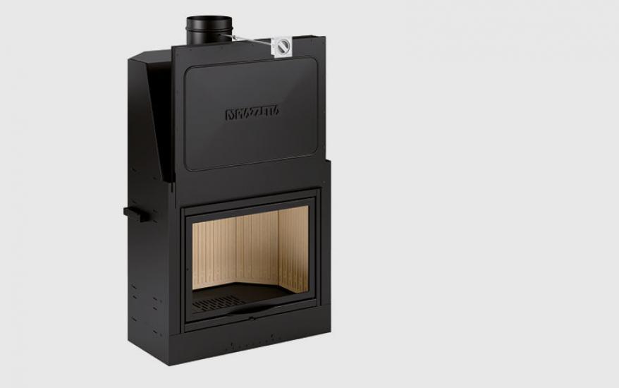 Focolare a legna che unisce pulizia estetica a praticità d’utilizzo. L’estrema linearità costruttiva offre innumerevoli soluzioni di installazione. Il vetro serigrafato incornicia il fuoco e lo rende il vero protagonista della casa.